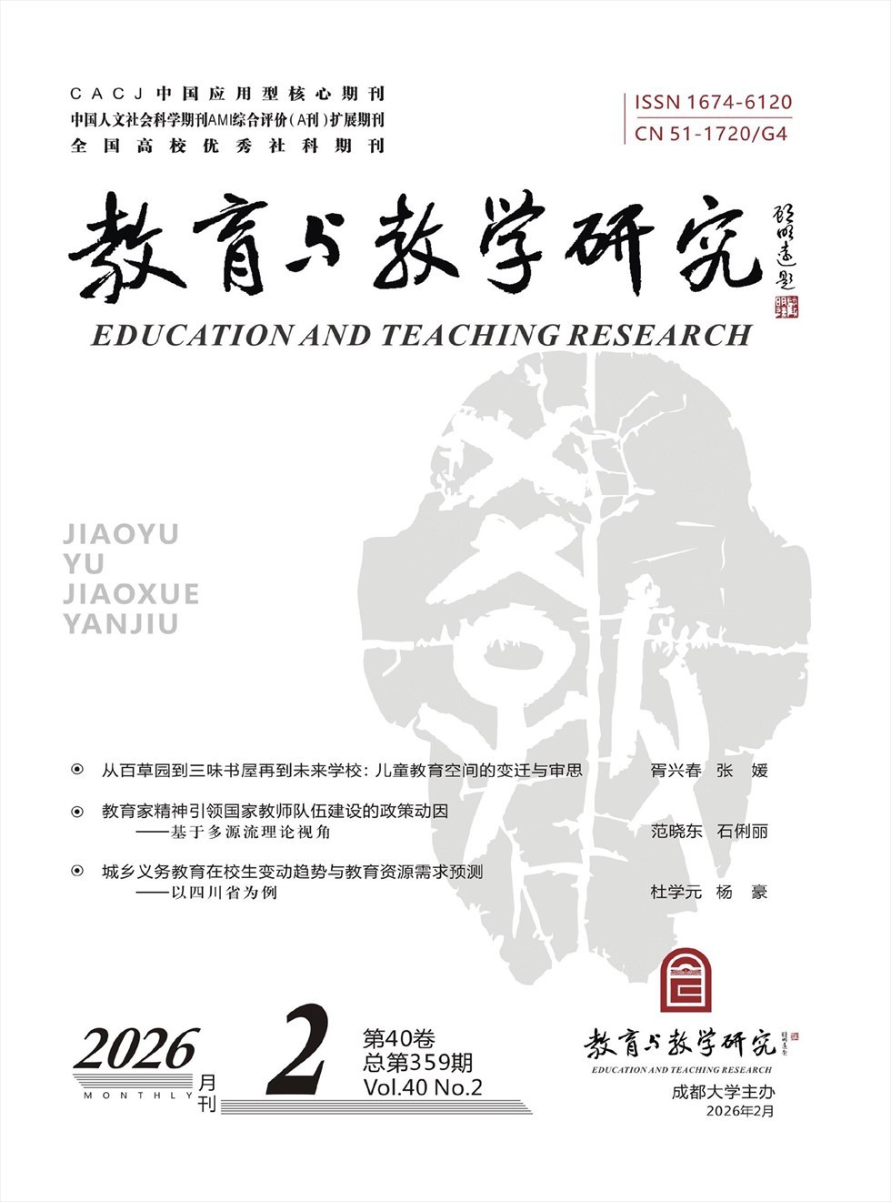 《教育与教学研究》是“RCCSE中国核心学术期刊”“中国人文社科AMI综合评价(A刊)扩展期刊”“中文核心期刊遴选扩展区期刊”;是“全国高校社科优秀期刊”“全国地方高校精品期刊”“四川省社会科学特色学术期刊”“四川省第三届社会科学优秀学术期刊”。