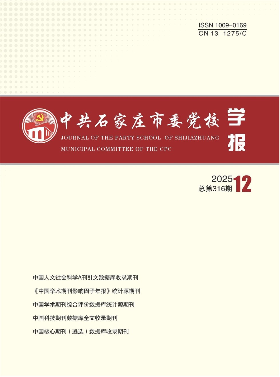 《中共石家庄市委党校学报》是由中共石家庄市委党校、石家庄行政学院、石家庄市社会主义学院主办的社会科学理论期刊,国内外公开发行。 本刊坚持以马列主义、毛泽东思想、邓小平理论、"三个代表"重要思想、科学发展观和习近平新时代中国特色社会主义思想为指导,坚持理论联系实际和"百花齐放、百家争鸣"方针,紧密结合党校教学科研实际,跟踪理论研究的热点、难点问题,着重反映建设中国特色社会主义进程中提出的重大理论和现实问题,反映石家庄市经济社会发展的实际。